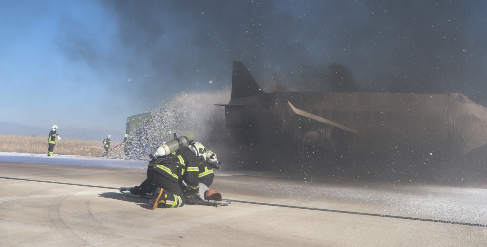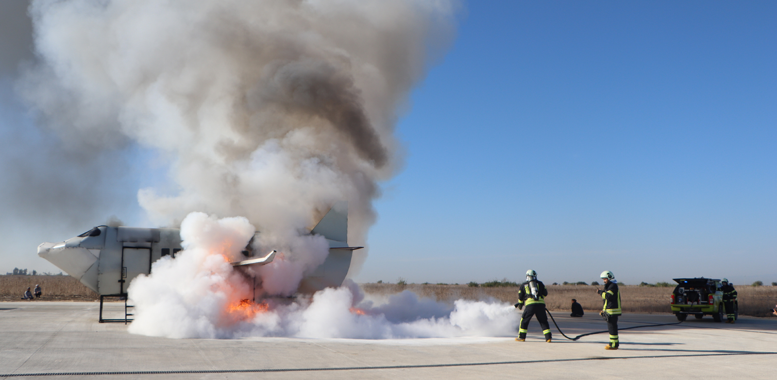 Alarm durumuna geçen Havalimanı Kurtarma ve Yangınla Mücadele (ARFF) ekipleri, kısa sürede olay yerine ulaştı. ARFF ekip liderinin ilk değerlendirmesinde, rüzgârın 21 pist yönünden 5 knot kuvvetinde estiği, uçağın sağ kanadının yanmakta olduğu ve mürettebatın kapıyı açarak acil tahliye slaydını aktif ettiği belirlendi. Yolcular slayt üzerinden tahliye edilirken yaralıların olduğu, ayrıca uçak içinde mahsur kalan yolcu ve mürettebatın bulunduğu senaryo gereği tespit edildi.