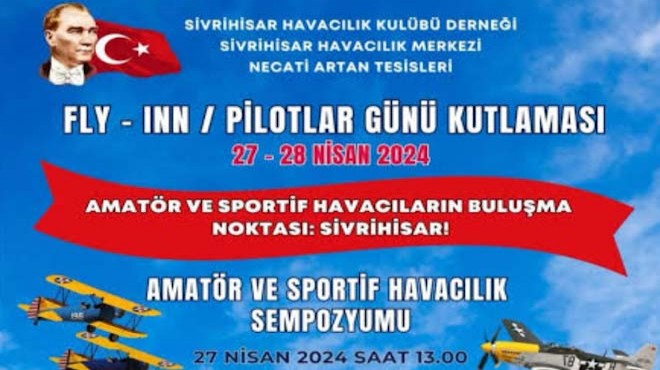 “FLY-INN / PİLOTLAR GÜNÜ KUTLAMASI” 27 ve 28 Nisan tarihlerinde Sivrihisar Havacılık Merkezi / Necati Artan Tesisleri’nde Altıncı kez düzenleniyor. Havacılık tutkunlarının bir araya geldiği “FLY-INN / PİLOTLAR GÜNÜ KUTLAMASI” pilotlar ve ailelerine bol uçuşlu bir gün geçirme imkânı sağlıyor.