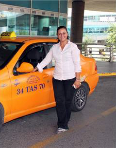 Atatürk Havalimanı’nda çalışan taksiciler içinde tek kadın şoför olan Hilal İzgördü, taksicilerin gülen yüzü oldu