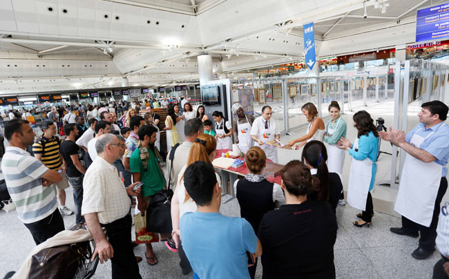 TAV Havalimanları tarafından işletilen İstanbul Atatürk Havalimanı’nda bulunan kültür-sanat platformu TAV Galeri, TAV Ebru Atölyesi’ne katılan çalışanların eserlerine ev sahipliği yapıyor. Etkinliğin ilk gününde Türkiye’nin önde gelen ustalarından olan TAV Atölye eğitmeni Eda Özbekkangay ve atölye katılımcıları yolcular için canlı olarak ebru yaptı. Düzenlenen etkinlikle sergiyi ziyaret eden yolcular da ebru yapımını deneme fırsatı yakaladılar. Ayrıca, yolculara atölye katılımcıları tarafından yapılan ebrulu kitap ayraçları verildi.
