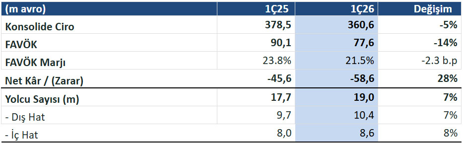 Almatı Havalimanı’nda dış hat trafiği güçlü biçimde artmaya devam ederken, yatırım programımızın ikinci fazı takvime uygun şekilde ilerliyor. Kazakistan’ın bölgesel bir aktarma ve lojistik merkezi olma hedefini doğrultusunda jet yakıtı arz politikasındaki son değişiklikler 2026’nın ilk çeyreğinde hacim ve marjlar üzerinde baskı yarattı. Bununla birlikte, maliyet verimliliğinin artmasının ve rekabetçi fiyatlamanın orta vadede trafik büyümesine daha güçlü katkı vereceğine inanıyoruz. Bu nedenle 2026’yı Almatı için bir geçiş yılı olarak görüyoruz; havacılık gelirlerini güçlendirmeye, operasyonlarımızı optimize etmeye ve uzun vadeli değer yaratımını korumaya odaklanıyoruz” dedi.