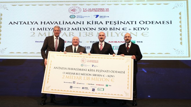 TAV Havalimanları ve Fraport ortaklığı Antalya Havalimanı’nın kapasitesinin artırılması ve 25 yıllık işletme hakkı için imzalanan sözleşme kapsamında Devlet Hava Meydanları’na (DHMİ) ön ödemeyi yaptı.