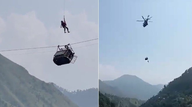 Pakistan'da bir teleferikte asılı kalan 8 kişi zorlu çalışmanın ardından kurtarıldı