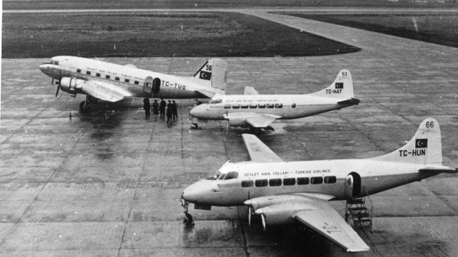 THY'nin sosyal medya hesabından yapılan ve 1955 yılında çekilen siyah beyaz eski tip yolcu uçaklarının bulunduğu fotoğraflı paylaşımda, "1955'te çekilen bu fotoğraf siyah beyaz olabilir ama biz hala 20'lerimizdeki kadar genç hissediyoruz. #20liyaslarchallenge" ifadelerine yer verildi.