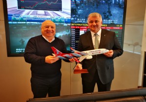 Türk Hava Yolları Genel Müdürü Bilal Ekşi, “Büyük Göç” öncesi TAV CEO’su Sani Şener’e veda ziyareti gerçekleştirdi. İstanbul Havalimanı ve taşınma konularındaki sohbetin ardından Türk Hava Yolları Genel Müdürü Bilal Ekşi, Sani Şener’e üzerinde teşekkür notu olan bir plaketi takdim etti.