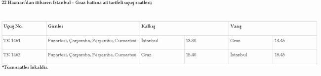 Bugün başlayan İstanbul – Graz uçuşları haftada 4 sefer karşılıklı olarak yapılacak. İstanbul’dan Graz’a gidiş-dönüş 89 dolardan başlayan açılışa özel fiyatlarla seyahat edilebilir. Ayrıca Miles&Smiles üyeleri yeni açılan hatlarda ilk 6 ay boyunca yüzde 25 mil indirimli ödül biletle seyahat edebilir ve uçuş sınıflarını yükseltme olanağına sahipler.
