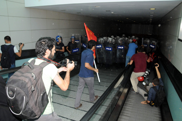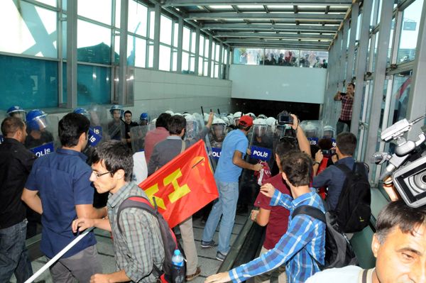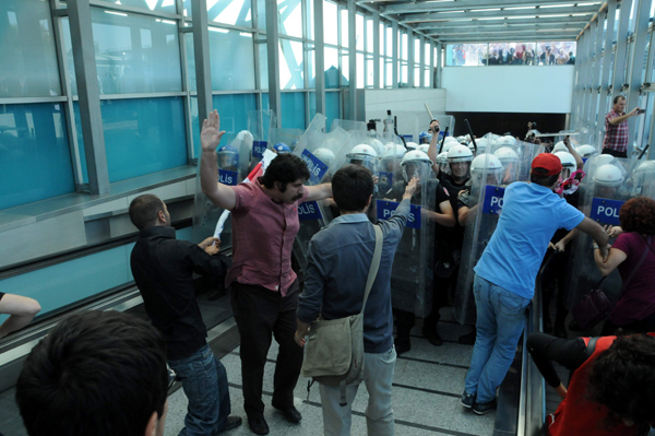 THY Greviyle Dayanışma Komitesi adlı grup adına desteğe gelen yaklaşık 150 kişilik grup, Atatürk Havalimanı metrosunda toplandı. Burada THY’nin grevci işçileriyle birleşerek Genel Müdürlüğe yürümek isteyen grupla polis arasında arbede çıktı. Polis biber gazıyla müdahale etti.