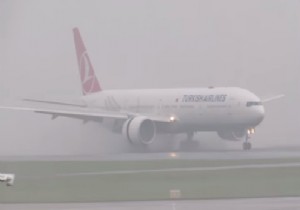 Türk Hava Yolları’nın İstanbul-Manchester seferini yapan TK 1995 sefer sayılı Boeing 777 uçağından muhteşem ‘ıslak iniş’