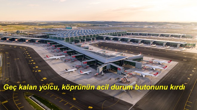 Türk Hava Yollarının İstanbul-Ercan seferini yapan uçağına geç kalan yolcu, körüğün acil durum butonunu kırarak uçağı bindi