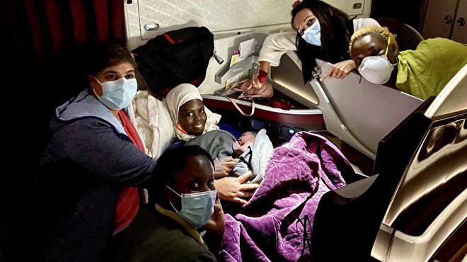 Katar Havayolları’nın Katar’ın başkenti Doha’dan Uganda’nın Entebbe kentine 5 Aralık günü yapılan uçuşunda bulunan Dr. Aisha Khatib, hamileliğinin 35. haftasında olan ve doğum sancıları tutan Ugandalı bir kadını uçakta, seyir sırasında doğurttu. Khatib yaptığı açıklamada “Uçakta bebek doğurtacağımı hiç düşünmemiştim! Bu Mucize’nin havada doğmasına destek olan havayolu ekibine teşekkürler! Anne ve bebek iyi ve sağlıklı” dedi.