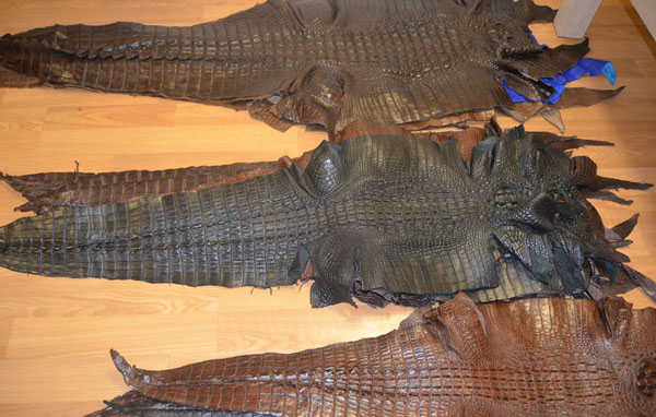 İşte ele geçirilen timsah ve vatoz derileri...