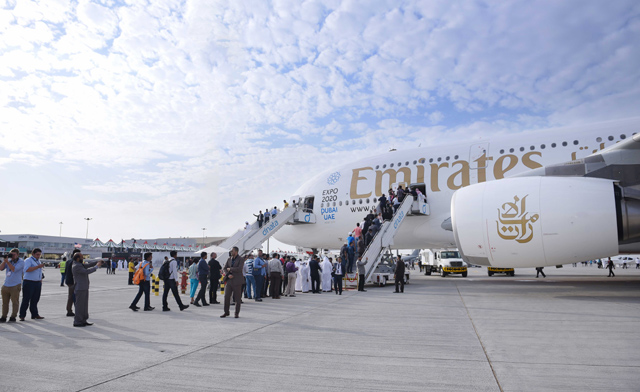 Emirates’in Hamburg Finkenwerder’deki Airbus tesisinden teslim aldığı yeni çift katlı A380 uçağı Dubai Airshow’da ziyaretçileri ile buluştu. İlk defa iki sınıflı olarak tasarlanan bu uçakla Emirates filosundaki A380 jumbo jet sayısı 68’e yükseldi. Filoya yeni katılan jumbo jet, 1 Aralık itibariyle Kopenhag ve Bangkok’a tarifeli seferlerini gerçekleştirmeye başlayacak.