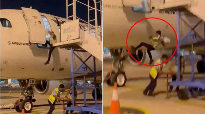 Park halindeki uçağa sabitlenen merdivenin çekilmesi nedeniyle o anda uçağın kapısında bulunan yer ekibinde görevli bir kişi metrelerce yükseklikten yere düştü.