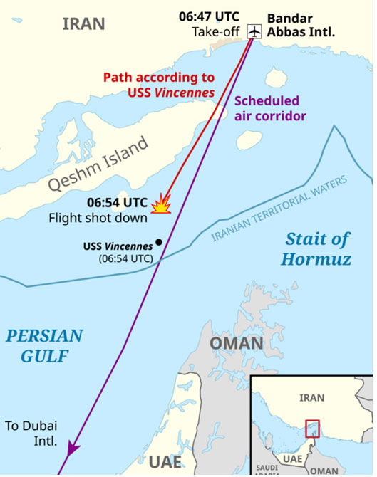 3 Temmuz 1988 günü İran Havayollarının 655 sefer sayılı Airbus A-300 tipi yolcu uçağı Bandar Abbas (hem askeri hem de sivil uçaklar tarafından kullanılan havaalanı), Dubai seferi için kalkıştan bir süre sonra füzelerle düşürülmüştü.