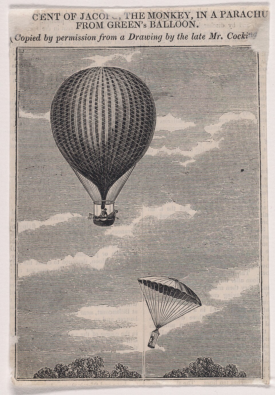 İngiltere’de Charles Green 1835’te Jacopo isimli maymunu balondan paraşütle atmıştı. 1837’de aynı maymunu bu kez Margaret Graham balondan paraşütle indirmişti.