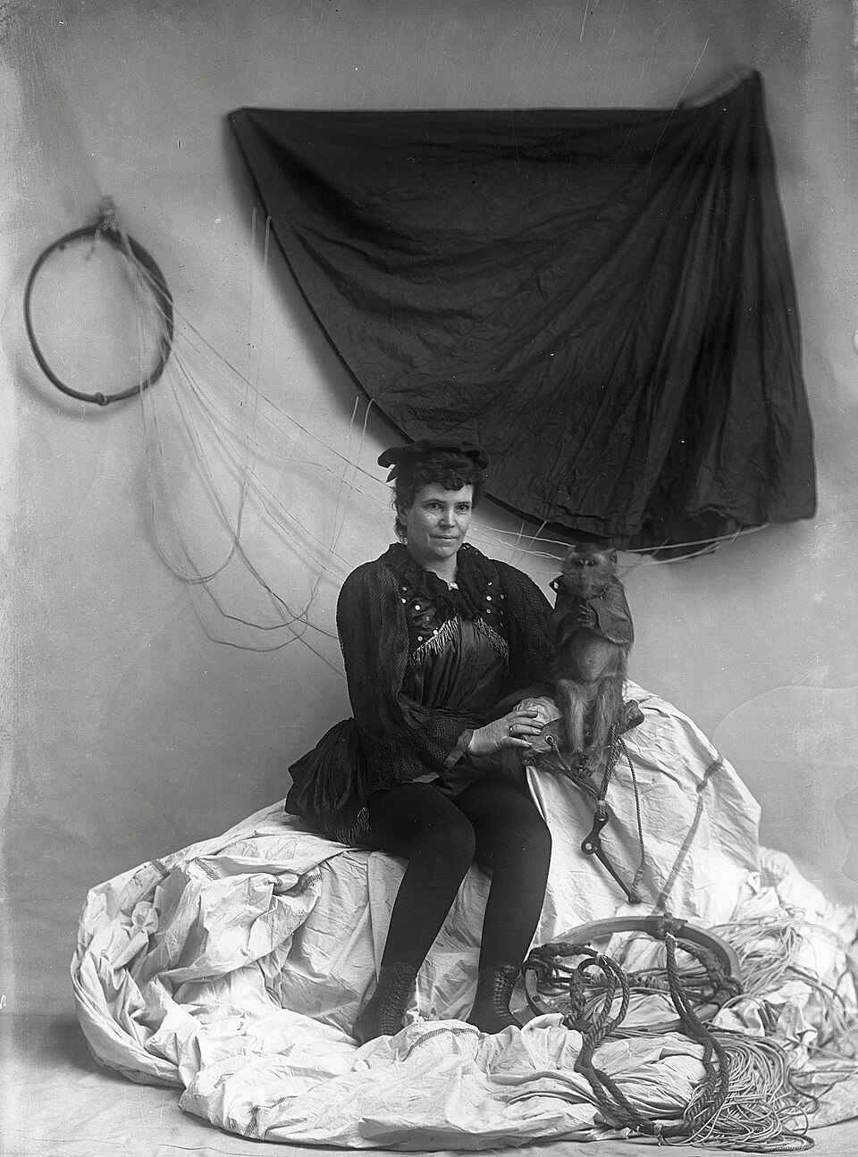 ABD’de kadın balon havacısı (Aeronaut: o yıllarda bu sıfat kullanılıyordu) Hazel Kayes, kendi eğittiği üç maymunu, özel küçük paraşütleriyle 1890’dan itibaren üç yıl boyunca devamlı balonla gösteri uçuşları ve paraşütle atlayışları yaptırmıştı.